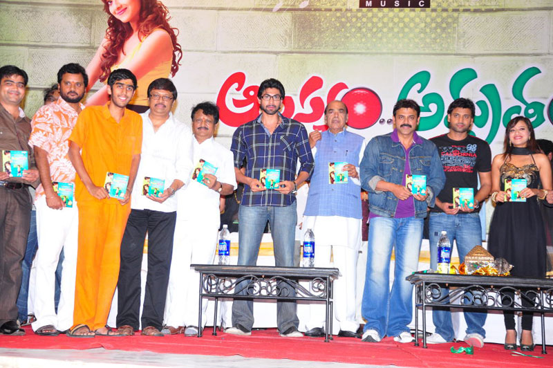 Nikhil Madalasa Sharma Staring Alasyam Amrutram audio released with function held in hyderabad, Dr D Ramanaidu, Suresh Babu, Venkatesh, Sumanth, Rana, Nikhil Manisharma, Madalasa Sharma and other cast n crew of the movie attended this event